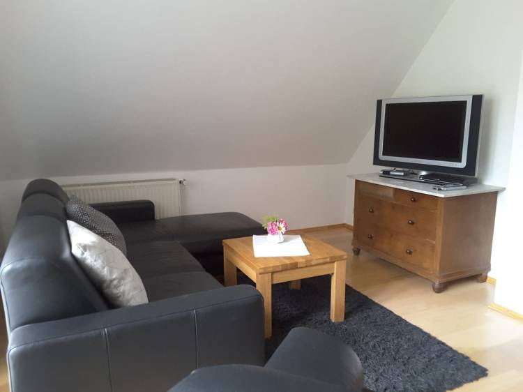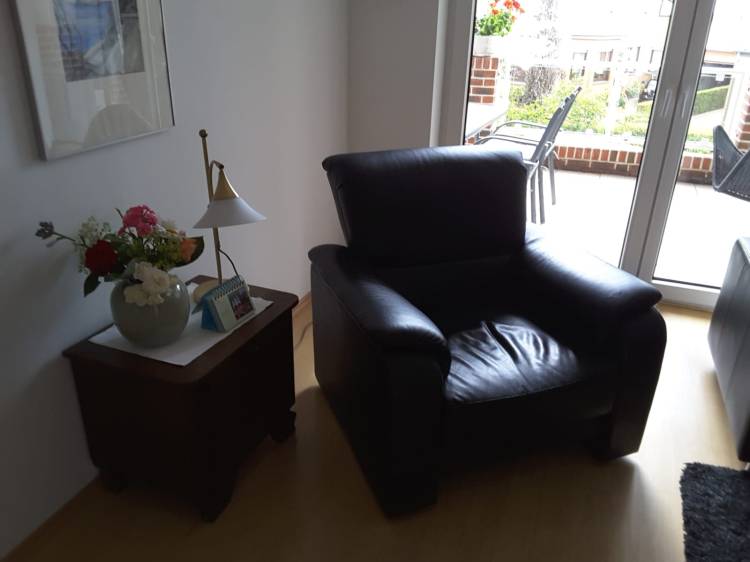Liebevoll eingerichtetes Wohnzimmer mit modernem Schlafsofa sowie Satelliten-TV, DVD-Player und Musikanlage.